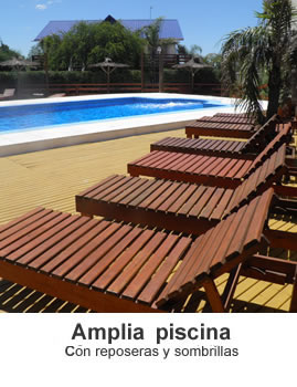 Amplia piscina de 5 mts. x 10 mts. de largo con más de 200 mts. cuadrados de SOLARIUM para disfrutar de un hermoso dia de pileta, contando tambien con reposeras y sombrillas para cada una de las familias que nos visitan.